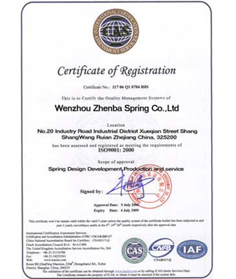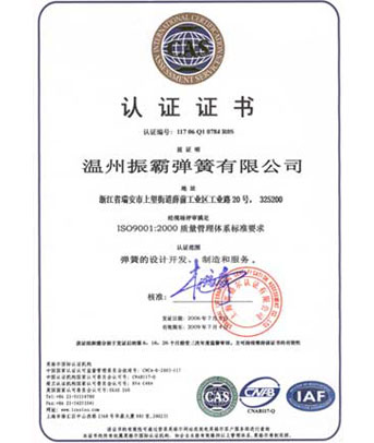 公司名字\Company name:Wenzhou ZHENBA spring> 榮譽(yù)資質(zhì)